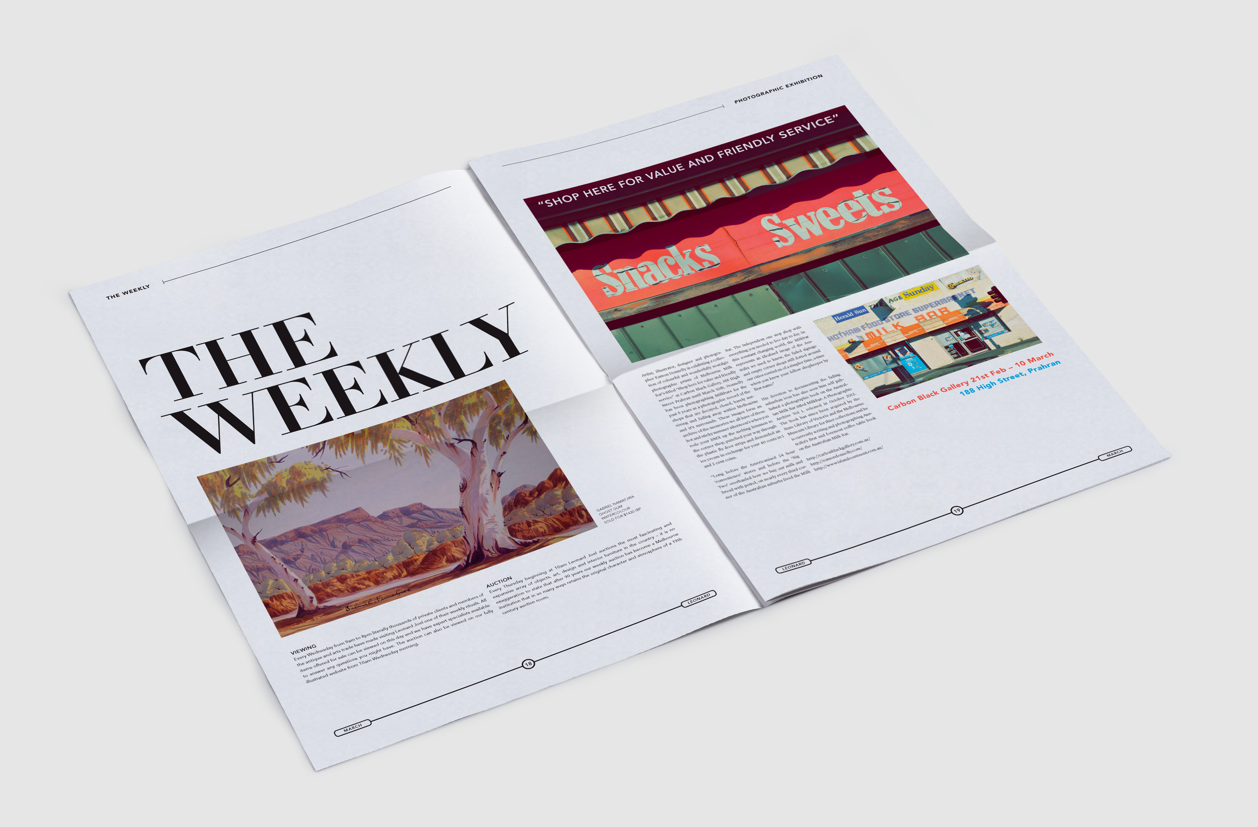 I worked with the team at Leonard Joel on their catalogues for their major auctions, advertisements and the monthly newspaper The Leonard. This a fast paced workflow with emphasis placed on clear communication, accuracy and collaboration with the photography team and heads of department.