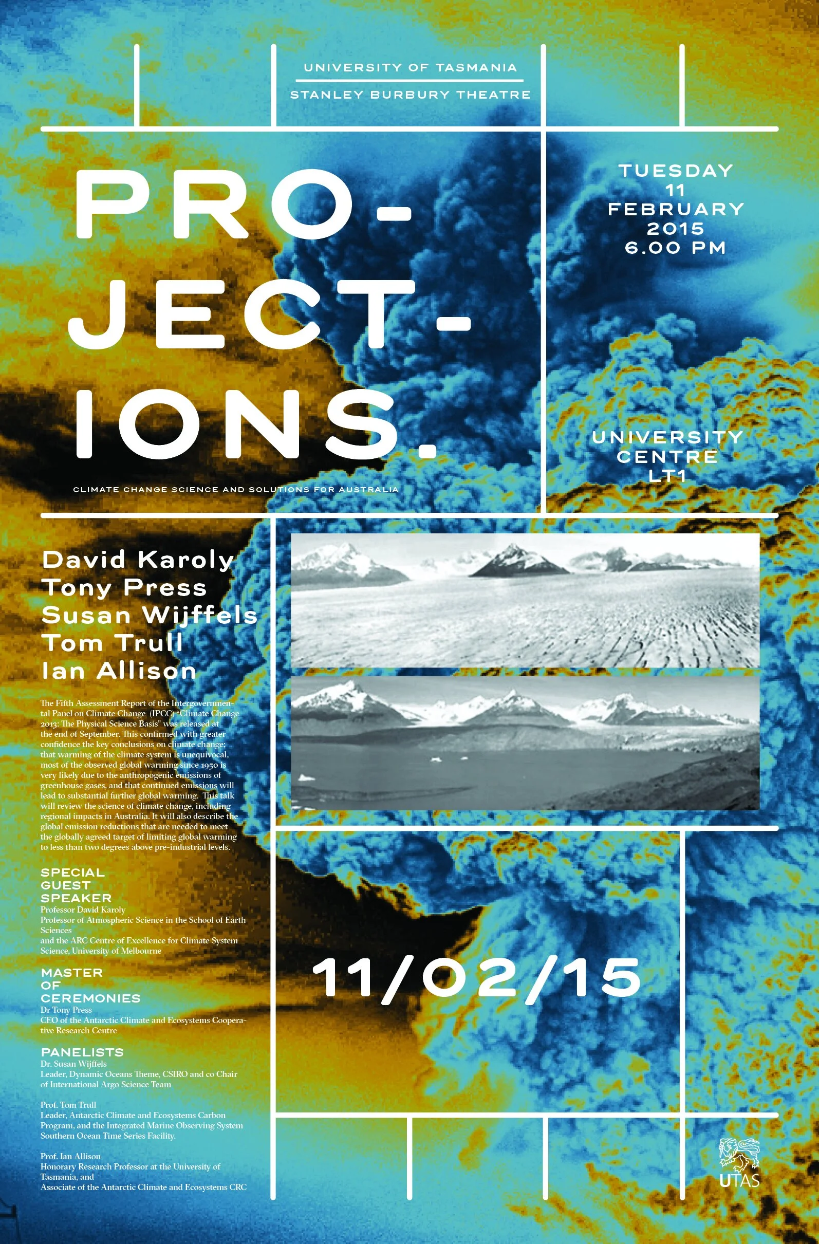 The University of Tasmania art department projects produced these promotional posters. Three in series on history, psychology and oceanography, and a fourth centred on climate change.