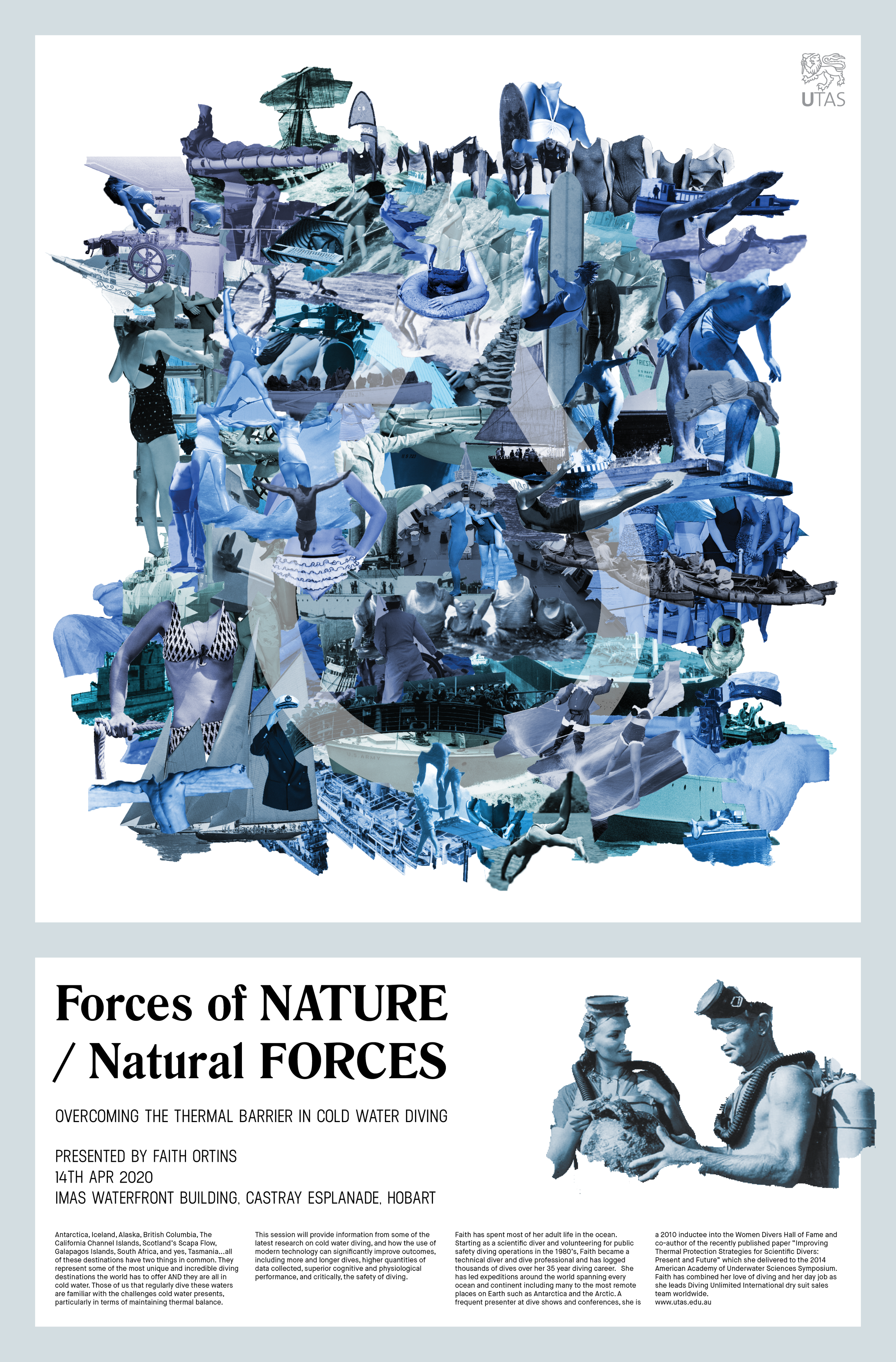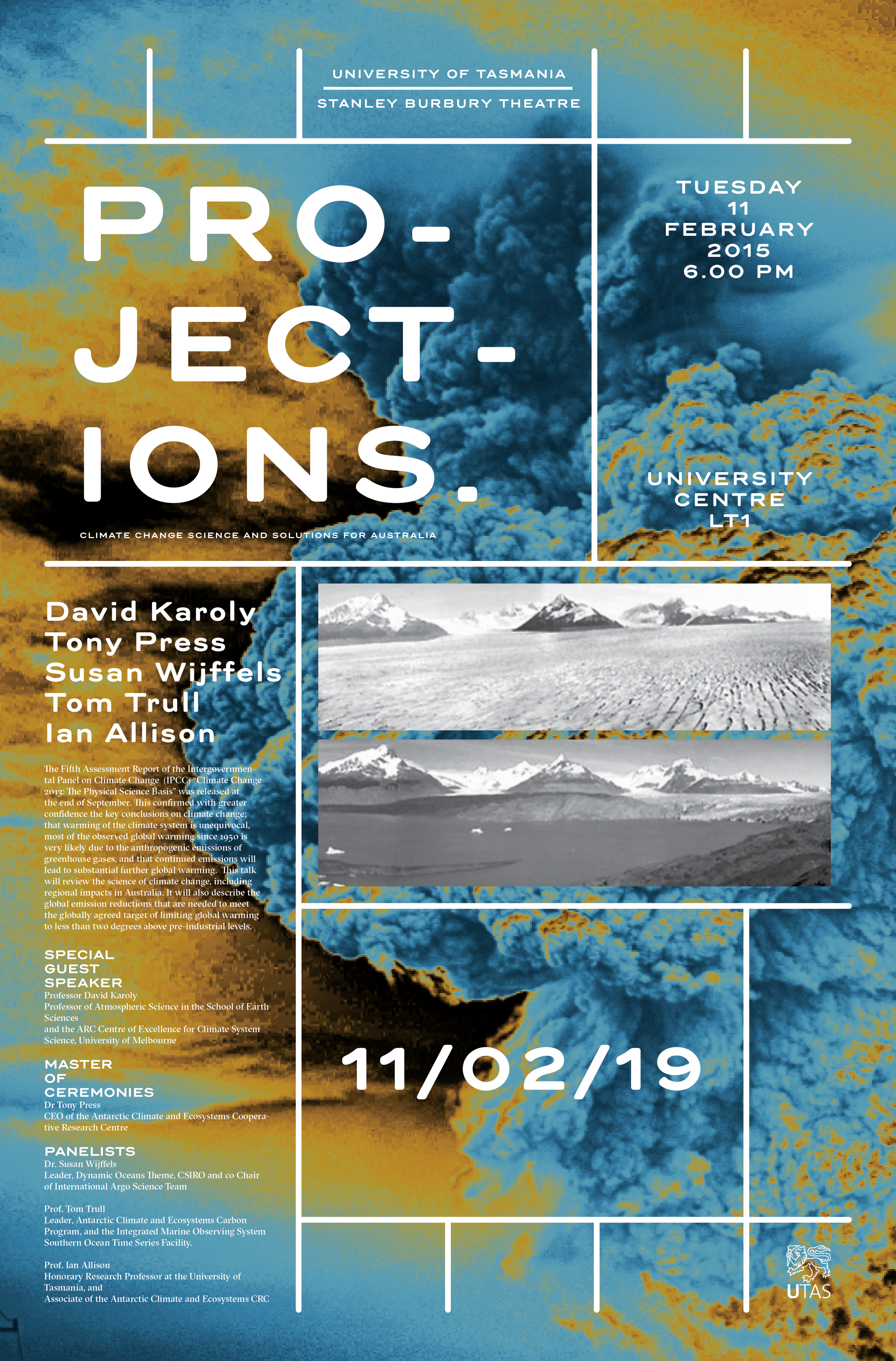 The University of Tasmania art department projects produced these promotional posters. Three in series on history, psychology and oceanography and a fourth centred on climate change.